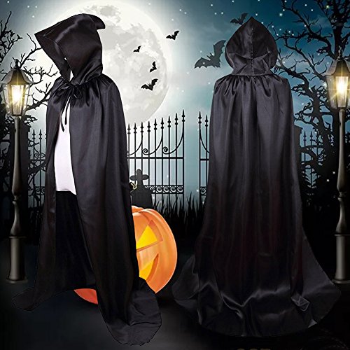 ✔ UNIQUE DESIGN:This Halloween cloak cape with oversize hoods,Ties at the neck.Great for vampires costumes, harry potter costumes, witch costumes, batman costumes, reaper costumes, ninja costumes, pirate costumes, etc.