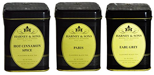 -. Binding : Misc. -. Brand : Harney & Sons -. EAN : 0722512325890 -. Feature : This Black Tea Sampler Features 4 Ounces of Loose Tea Per Tea Blend / Features Tea Blends Include Earl Grey, Paris, and Hot Cinnamon Spice / A Caffeinated Black Tea Sampler Set - Great for a Gift or Party Favor / Medium Bodied Set of Teas - All Ranging in a Variety of Sweetness and Citrus / Each Tin Makes Roughly 30-40 Cups of Tea -. ProductGroup : Grocery -. ProductTypeName : GROCERY -. Size : 4 Ounces -. Title : Harney & Sons Black Tea Sampler Earl Grey Hot Cinnamon Spice and Paris Loose Tea Tins -. UPC : 722512325890
