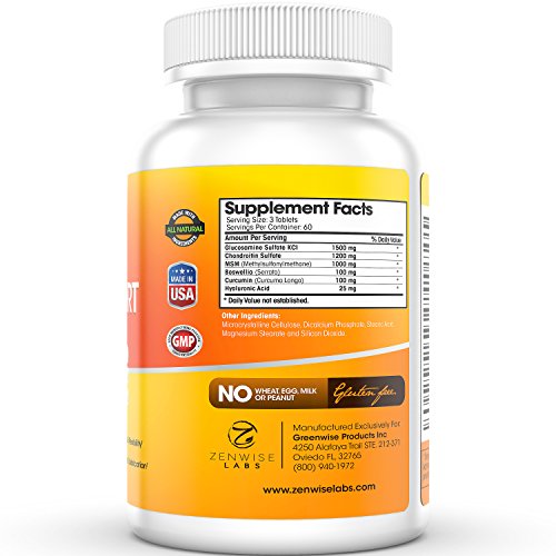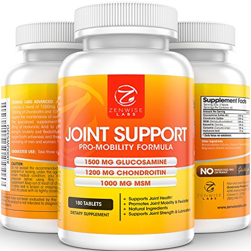 -. Feature : Extra Strength Joint Relief - Zenwise Labs Advanced Joint Support is a powerful joint supplement that specializes in the reduction of aches, pains, soreness and inflammation associated with joint related issues. Contains 1500mg Glucosamine, 1200mg Chondroitin, 1000mg MSM and Hyaluronic Acid to help men and women improve their mobility. / Proactive Ingredients for Ultimate Protection - Includes Glucosamine and Chondroitin to help fortify the joints in order to prevent gradual breakdown of cartilage and tissue, while MSM can help enhance the reformation of collagen for prime joint support. / Lubricates for Better Mobility - This fine-tuned joint formula features Hyaluronic Acid which acts as a joint fluid that absorbs through to the joints to leave them feeling soothes and lubricated for enhanced movement and flexibility. / Joint Supplements You Can Trust: Our FDA-registered facility is NSF and GMP certified, and all of our products are manufactured in the USA. / Manufacturer Guarantee: We offer a 100% no-hassle Manufacturer Guarantee for all our products. If you do not get the results you were looking for, simply let us know and we will provide you with a full refund.