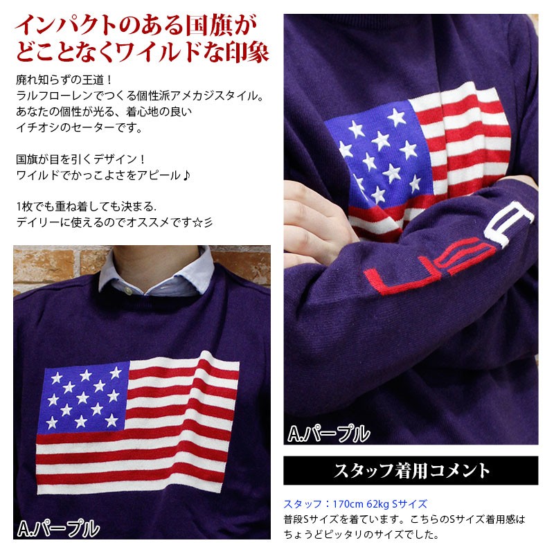 | ラルフローレンからポロゴルフの丸首セーターが登場。 肌触りの良い素材に星条旗柄がとってもオシャレです。 ■サイズ パープル 【S】 肩幅42 身幅58 着丈69 袖丈66 ブラウン 【S】 肩幅40 身幅53 着丈64 袖丈61 【M】 肩幅42 身幅56 着丈65 袖丈65 【L】 肩幅43 身幅60 着丈68 袖丈68 ※2cmほどの誤差はご了承下さい。 平置き採寸(単位cm) ■カラー パープル、ブラウン ■素材 ナイロン50% ウール30% コットン20%5400円以上送料無料 ■商品名:ラルフローレン アウトレット メンズ セーター ポロゴルフ Ralph Lauren POLO GOLF |