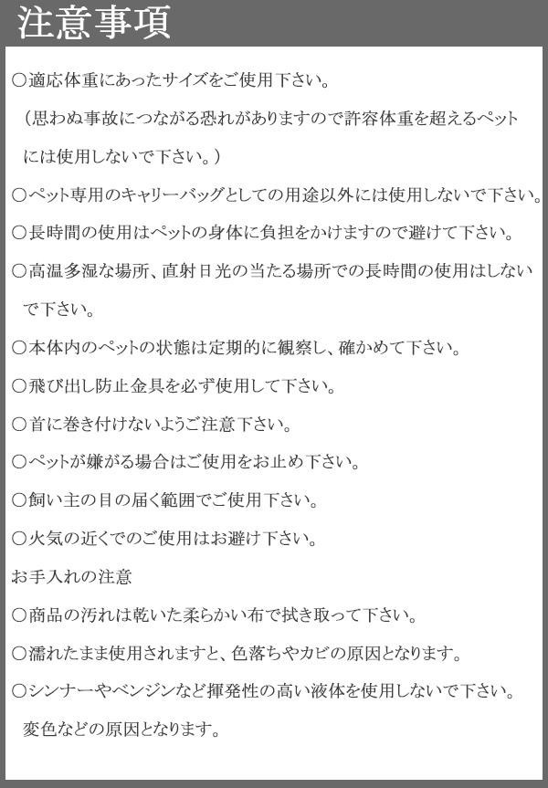 ペットのお出かけ・通院などにピッタリのおしゃれなキャリーバッグ☆肩かけの紐が長めなので持ちやすさも抜群!!フロント部と上部から中の様子が確認できる仕様なのもGOODです♪バッグの中には飛び出し防止器具付き!! |