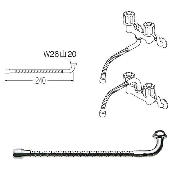 | パイプ部はラセン状、上向き、下向きでも使用できます。泡沫吐水。先端に止水する器具は取り付けできません。キッチンシンク、庭などの外回りに幅広く使用可能です。 |