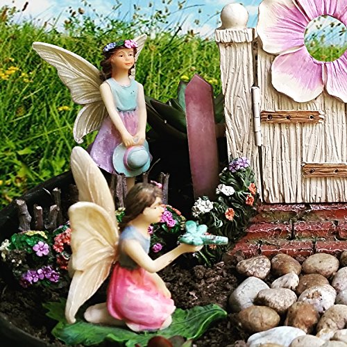 PREMIUM FAIRY GARDENING SET: Experience the Magic of Creating Your Very Own Fairy Garden with Your Complete Fairy Garden Set. Kit Includes: 2 Miniature Fairies, 1 Fairy Mail Box, 1 Fairy Door and 2 Colorful Bushes.