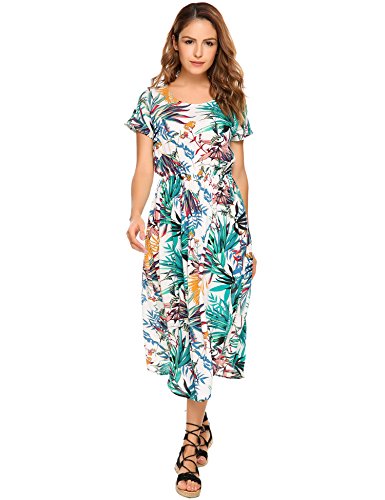 DESIGN & STYLE: The floral printed pattern is hot, have Elastic, comfy to dress up. A Stunning Summer Beach dress! An elegant and charming dress and also you can feel the texture is pretty soft, comfortable and flowy