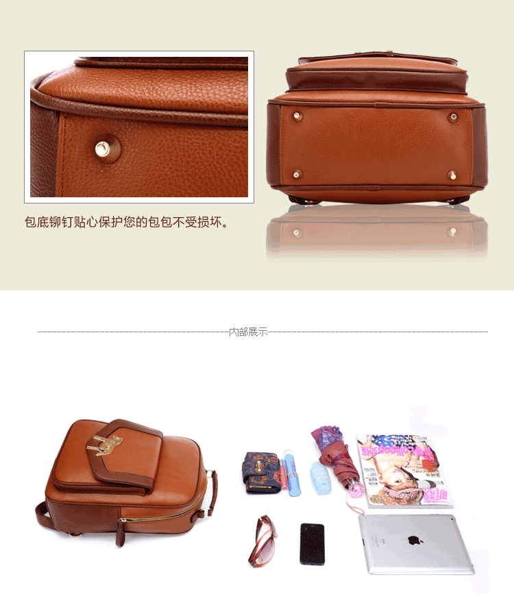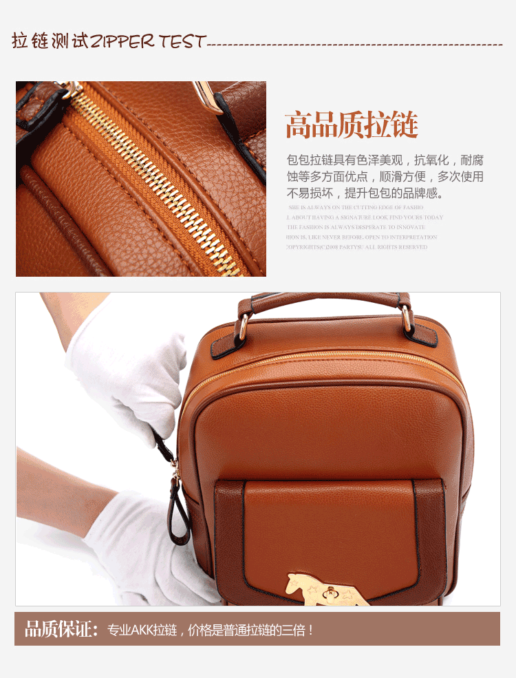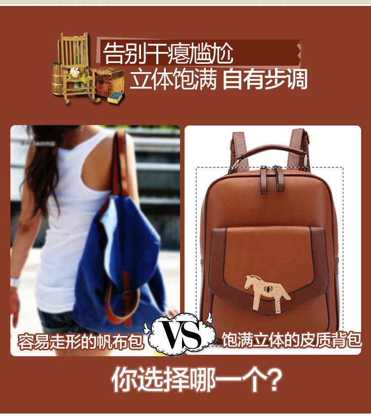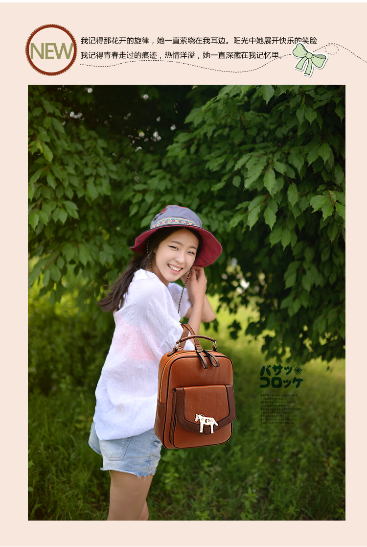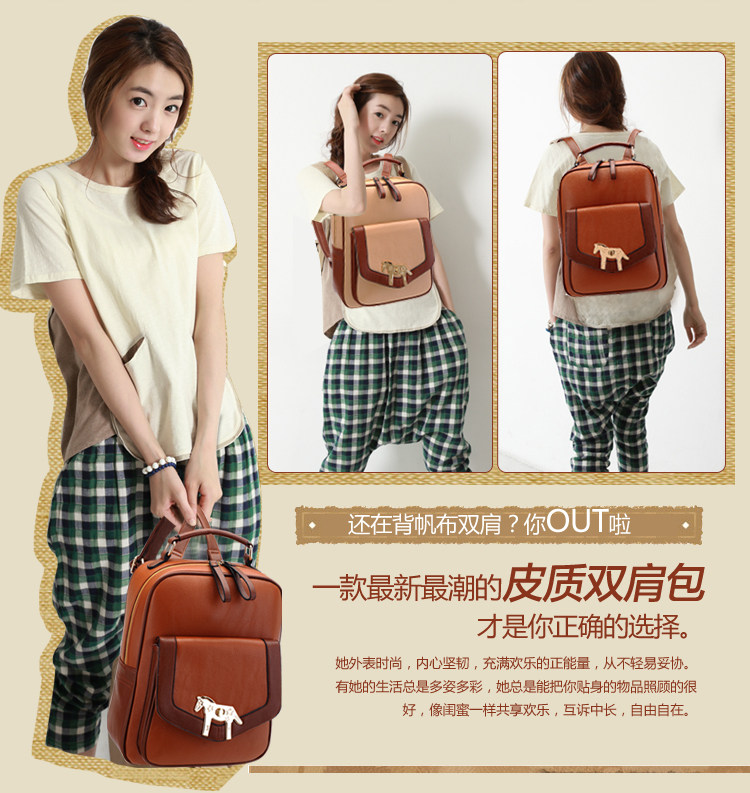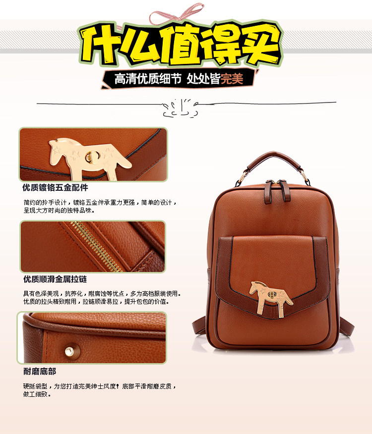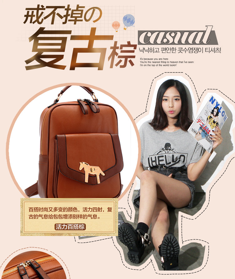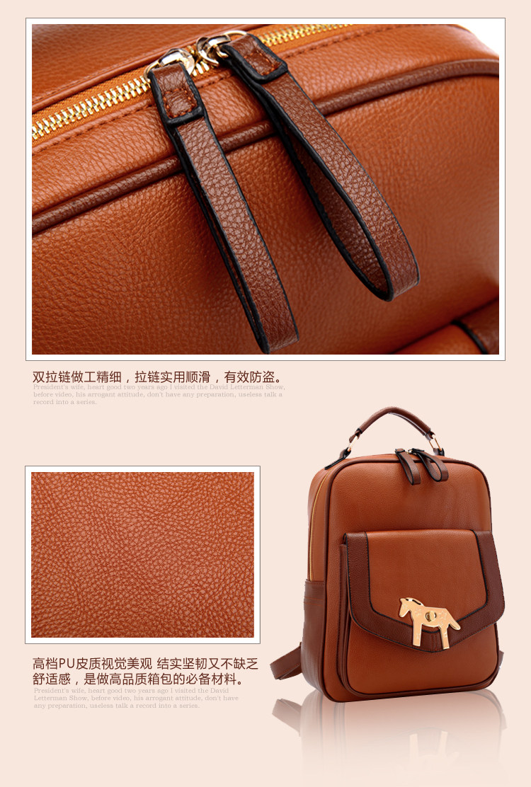 复古小马新款女背包电脑包。内部1个拉链袋,1个隔层拉链袋,2个置物袋 | |||