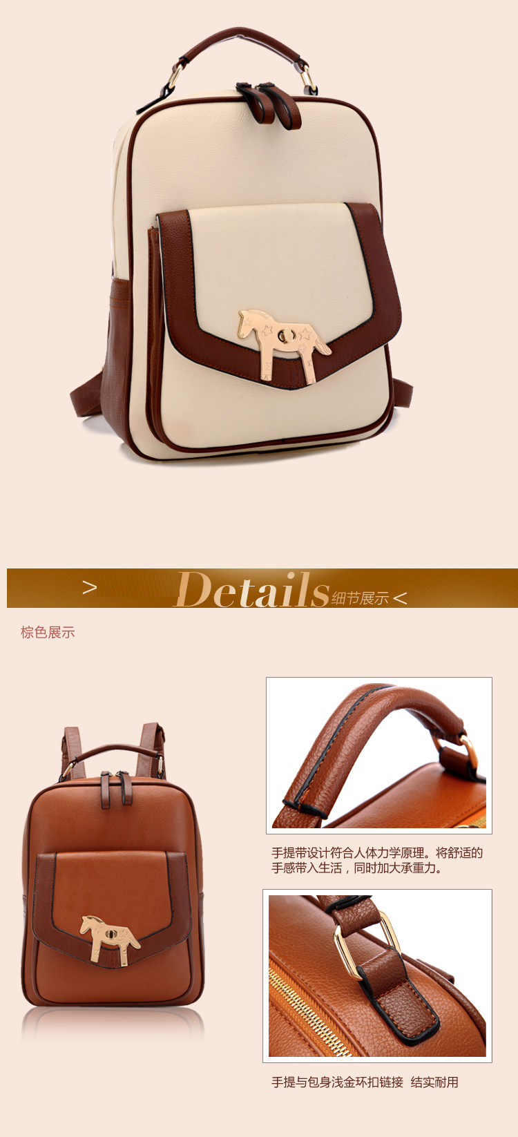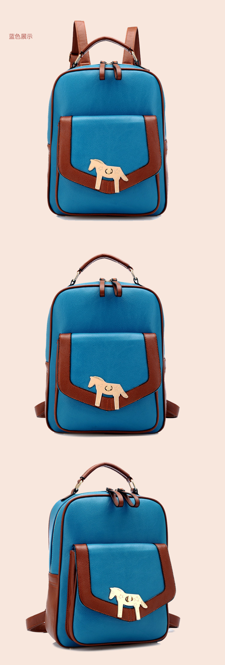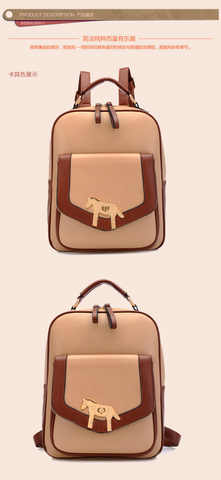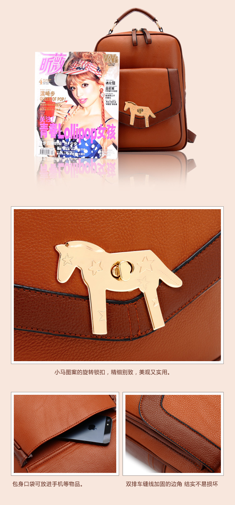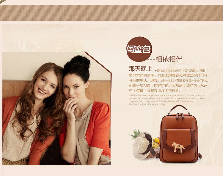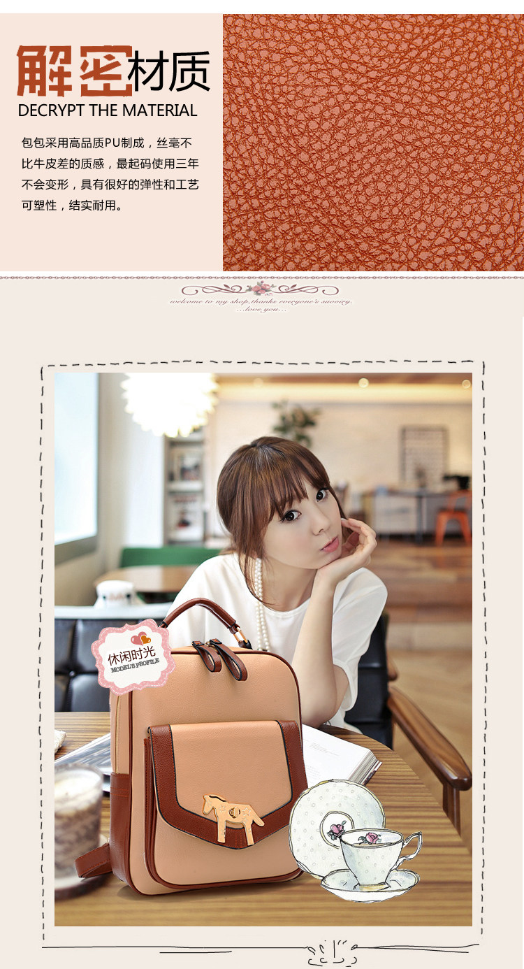 复古小马新款女背包电脑包。内部1个拉链袋,1个隔层拉链袋,2个置物袋 | |||