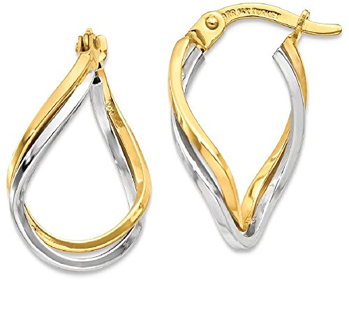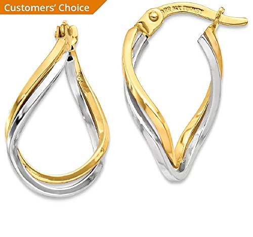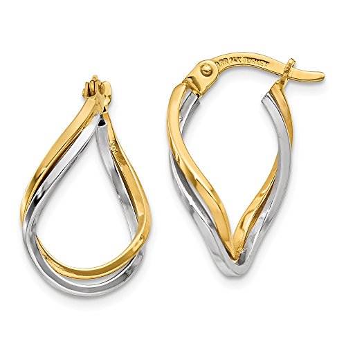ICECARATS DESIGNER JEWELRY 14K TWO TONE YELLOW GOLD TWISTED HOOP EARRINGS EAR HOOPS SET FOR WOMEN