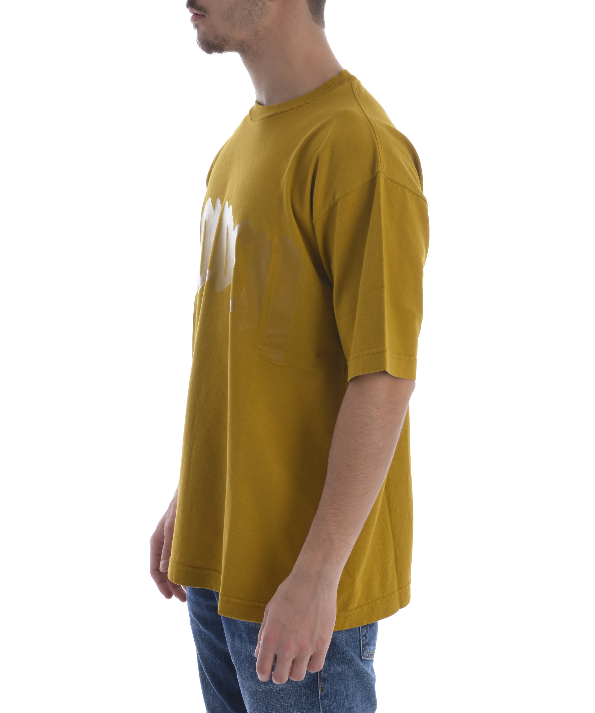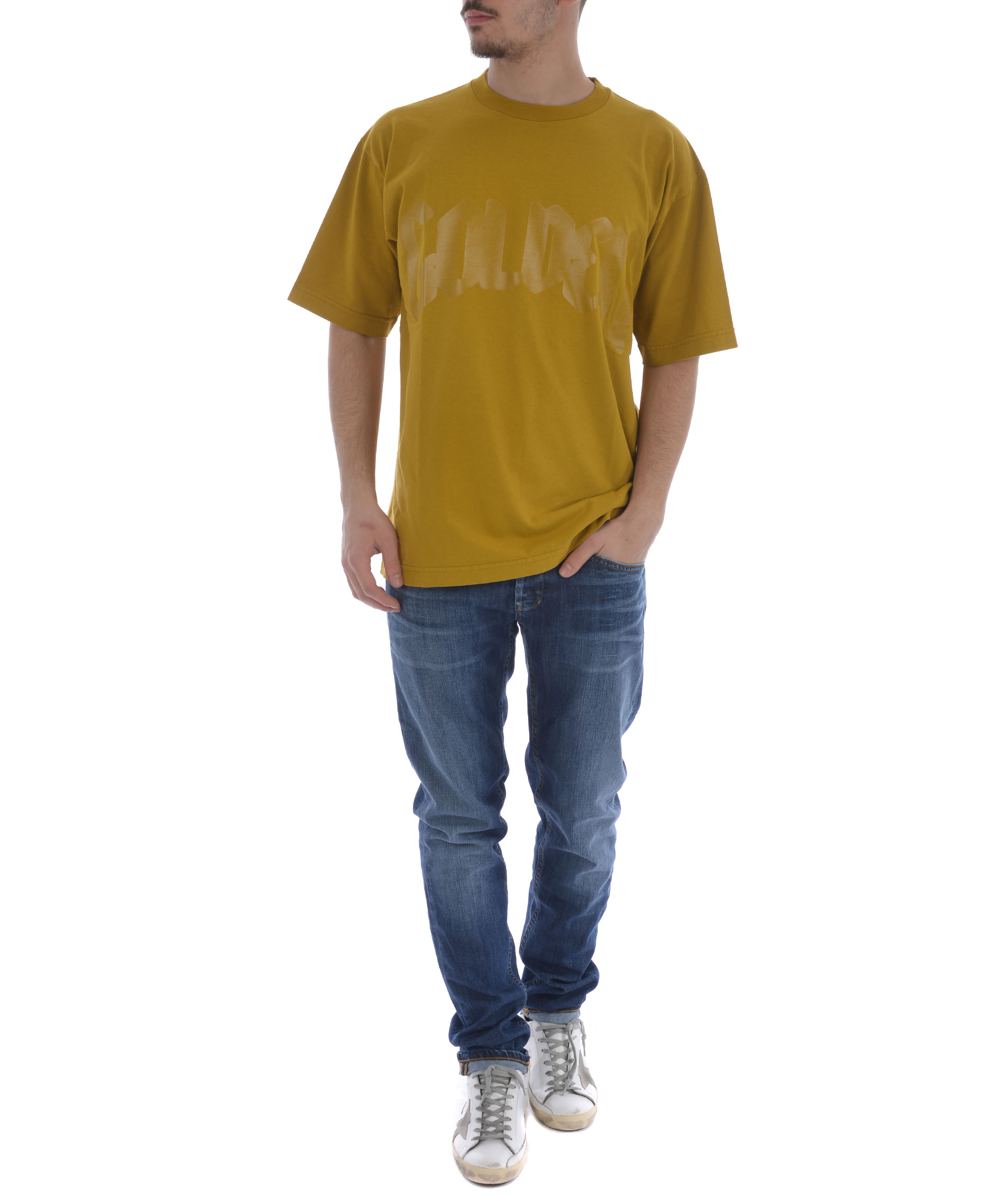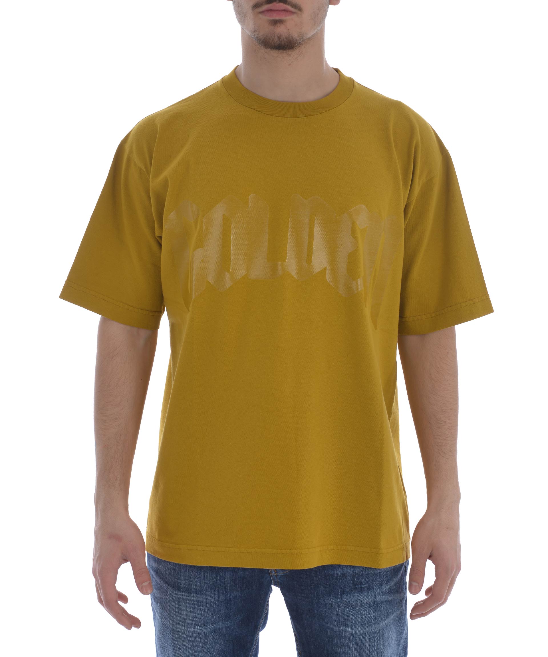 Golden Print T-shirt from Golden Goose: Yellow Golden Print T-shirt with round neck, short sleeves, oversized fit and straight hem.