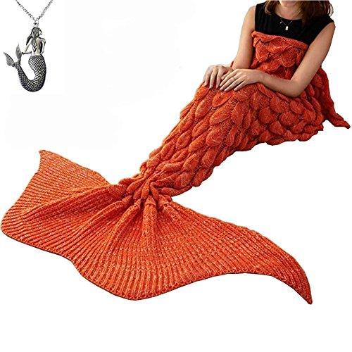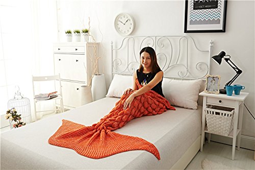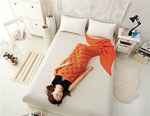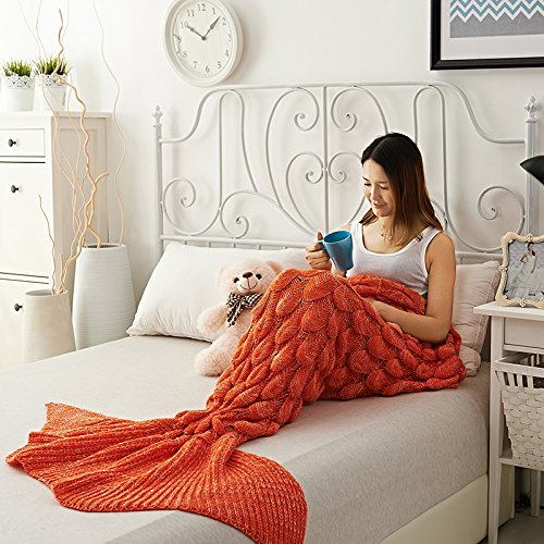 CZL Christmas Gift Knitted Mermaid Tail Blankets for Adults Teens Sleeping Bags Crochet Blanket Super Soft Sleeping Blankets (71"x32", Orange)