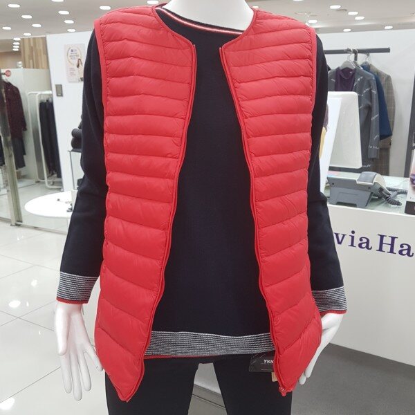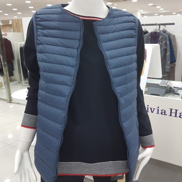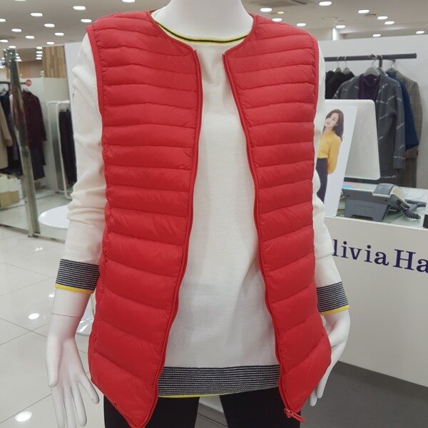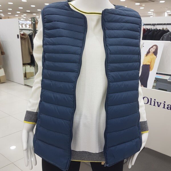 가볍고 따뜻하면서도 스타일리시한 컬러감의 집업 라운드 경량 베스트 아이템