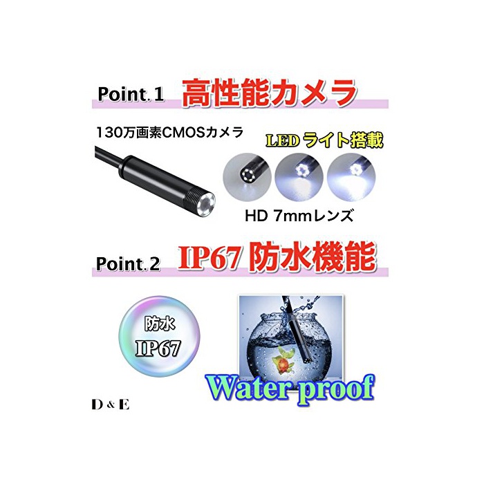 【D&E】 고해상도 USB접속 엔드 스코프 (android 대응 LED 내시경) 일본어 설명서 & 1년 보증이 붙어 있음 방수 모델