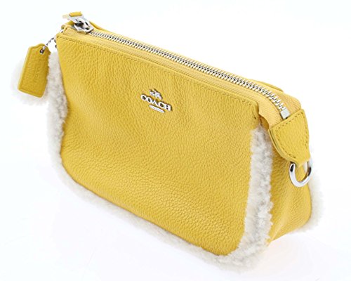 Product DescriptionLeather and shearling or pure leather Zip-top closure, Inside multifunction pocket Two credit card pockets 7 1/2 (L) x 4 1/2 (H) x 2 (W)0