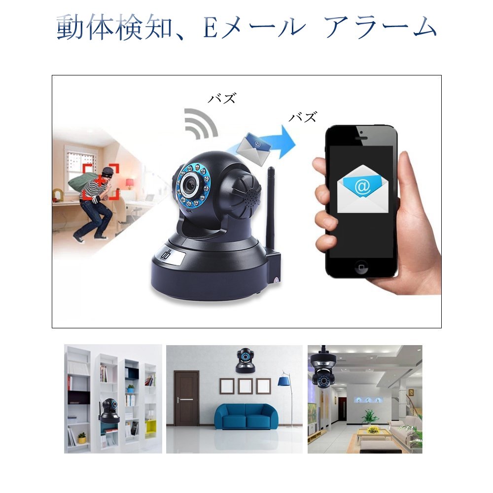 Motion detection, Alarm information (video, image) is sent by e-mail or FTP