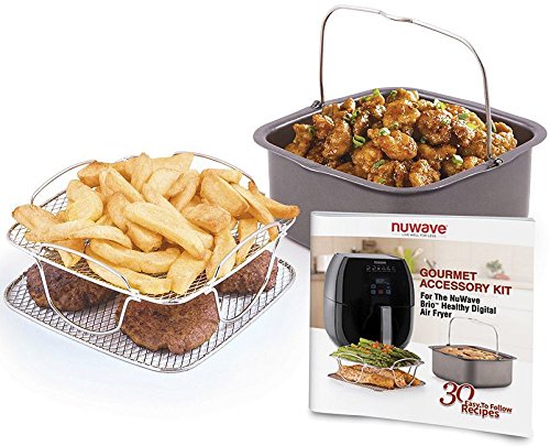Temp range from 100-400 degree in 5-degree increments Digital timer is programmable up to 100 hours 6 presets include: fries, frozen fries, nuggets, steak, poultry and fish Pre-heat button ensures desired results every time Reheat button automatically sets to 360Ë F for 4 minutes Includes 3 wattage control settings: 900w/1500w/1800W Basket divider lets you keep food separated while cookingFeature