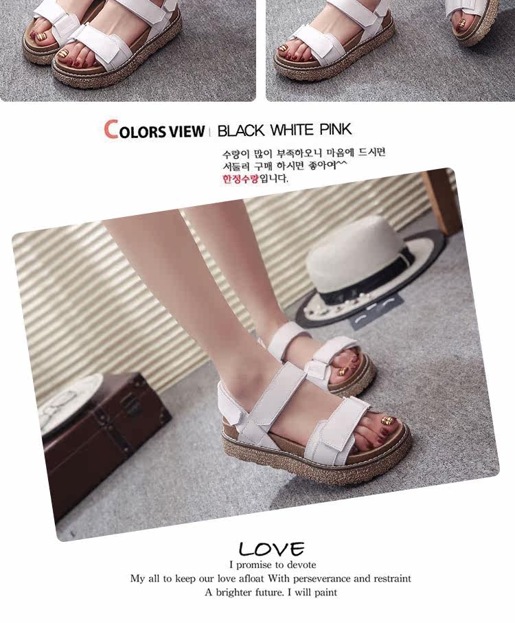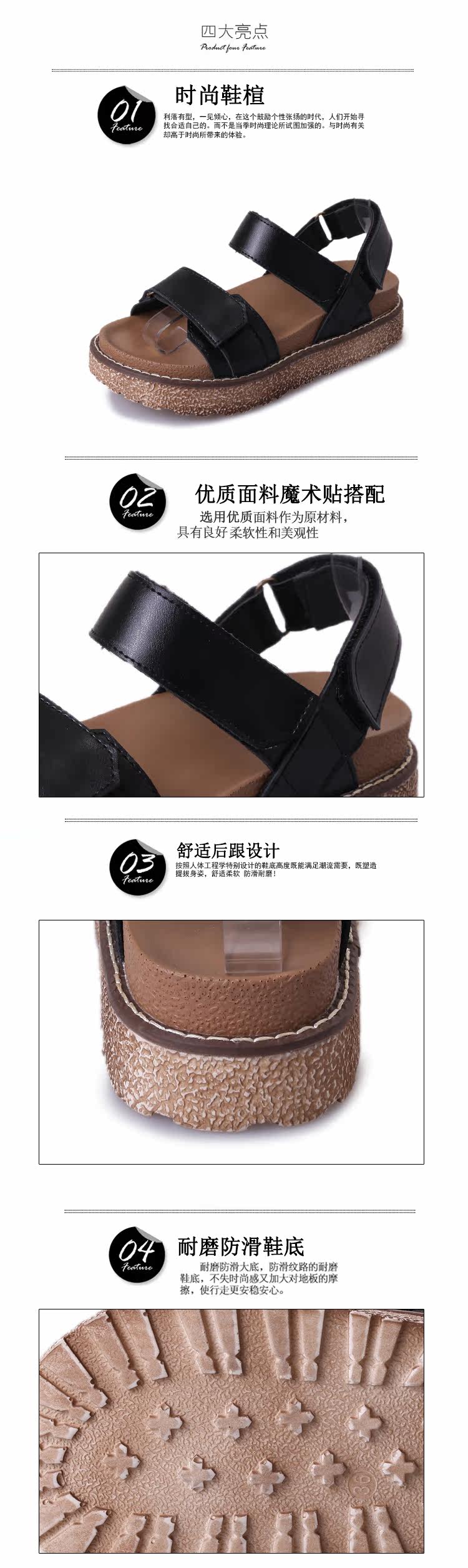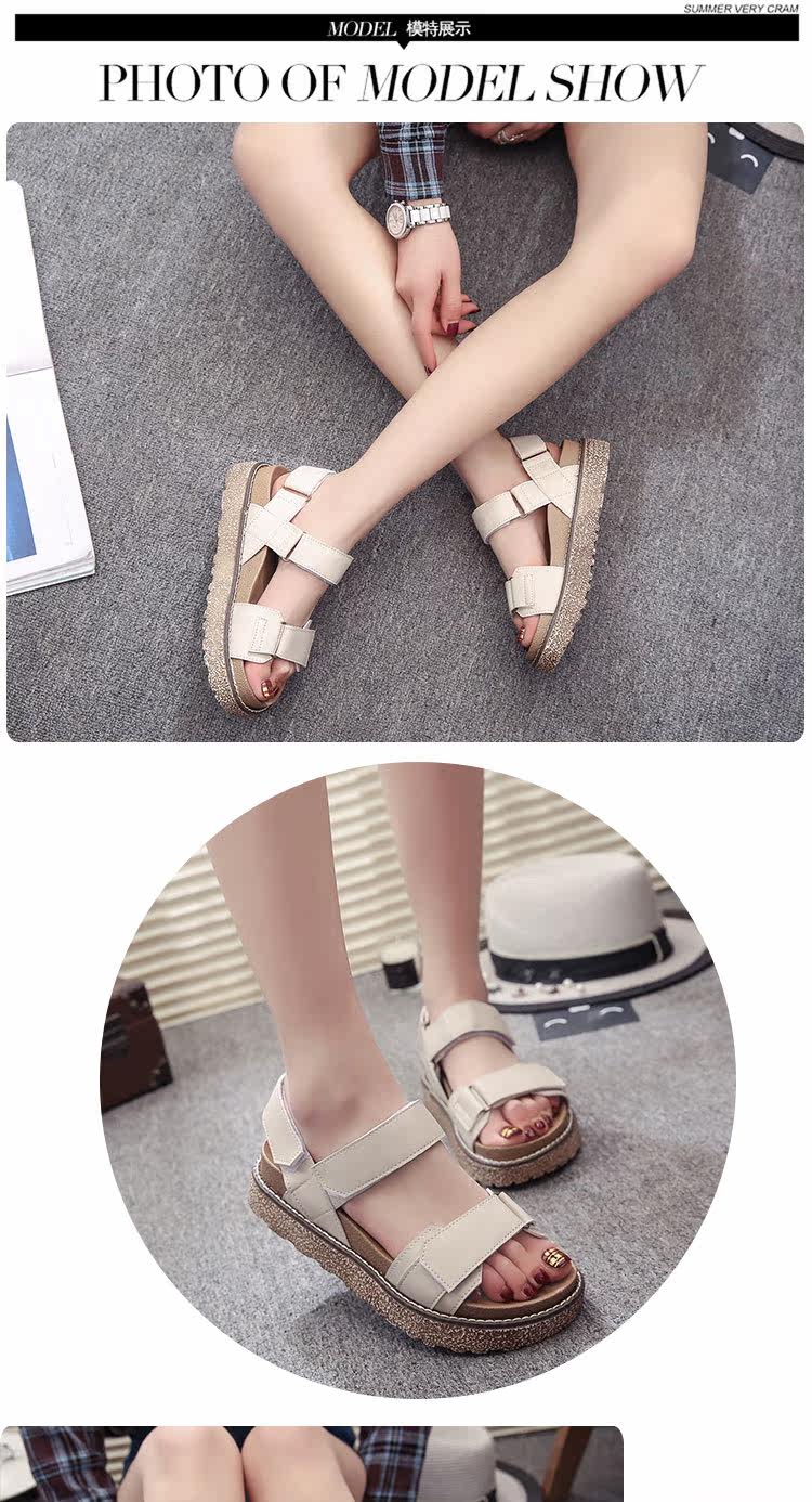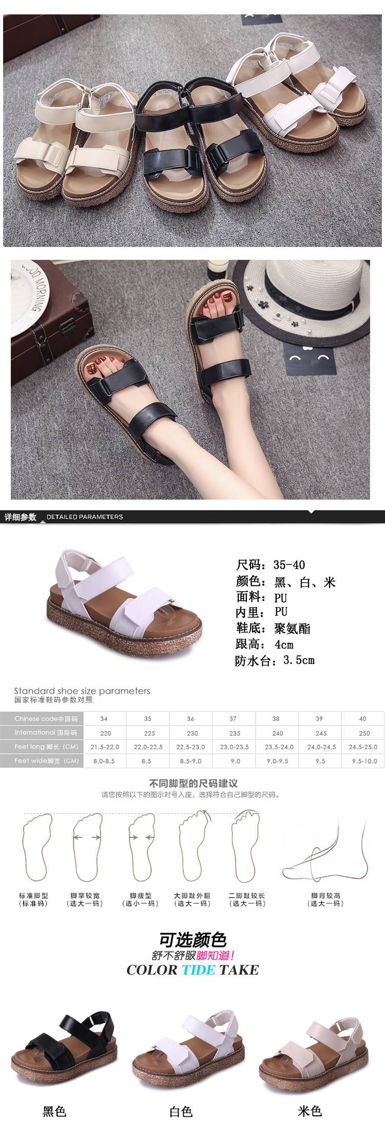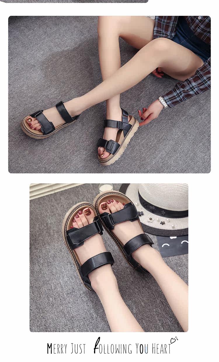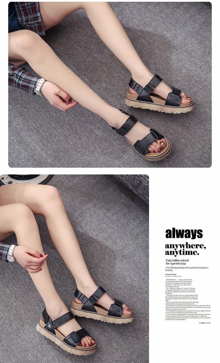 凉鞋女夏平底旅游运动罗马休闲鞋厚底中跟魔术贴一字带沙滩鞋
