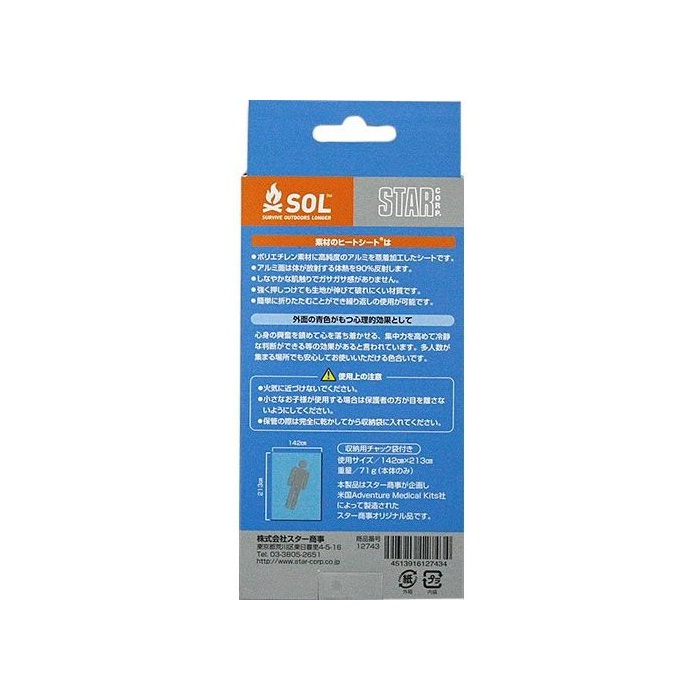 원본상품명: SOL(ソル) ヒトシト エマジェンシブランケット 1人用 ブル 12743