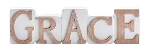 - Inspirational set of wood blocks, with one block for each letter, spells out the word Grace