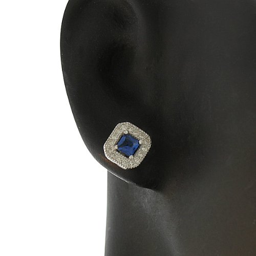 - Title : 925 Sterling Silver Royal Blue White CZ Square Charm Womens Pendant Necklace Stud Earrings Set