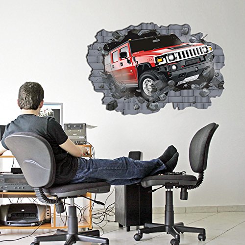 - Title : Oderin Art Wall Decal Mural 3d Off-road Vehicles To Break Through the Wall Removable Wall Stickers Wall Art for Home Living Room Decor