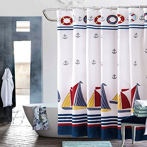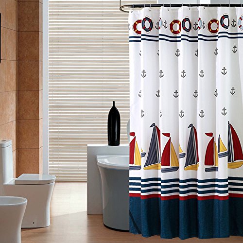 SUNBABY Nautical Sailing Boat Theme Shower Curtain Waterproof Polyester Fabric Bathroom Curtains with Hooks (72Wx72L, Color Sailboat)