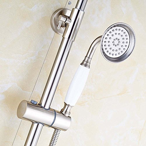 Shower Head Size:8". Hand Shower Hose Length:59".Connection Size:G1/2" Standard.Slid Bar Height:Adjustable 80cm-120cm(31"-47").Hole center distance on the wall:15cm(6")