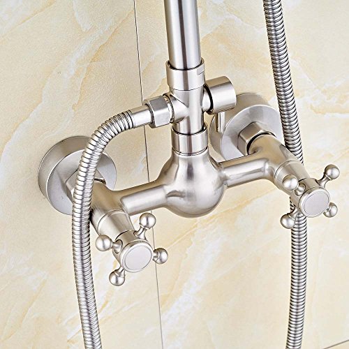 Senlesen Bathroom Rain Shower Faucet System Dual Handles with Handheld Sprayer Head Stainless Steel