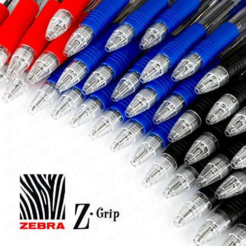 -. Feature : The Z-Grip is Zebra best selling Retractable Ballpoint. / Transparent barrel allows constant monitoring of ink consumption. / 1.0mm nib writes a 0.7mm line. / Features a rubber "Comfort Grip" and metal clip. / Pack contains the following colour inked pens: 16 x Black, 16 x Blue, and 8 x Red.