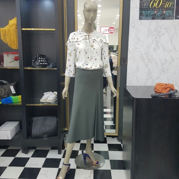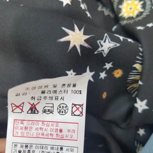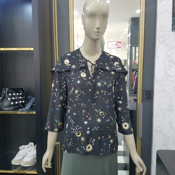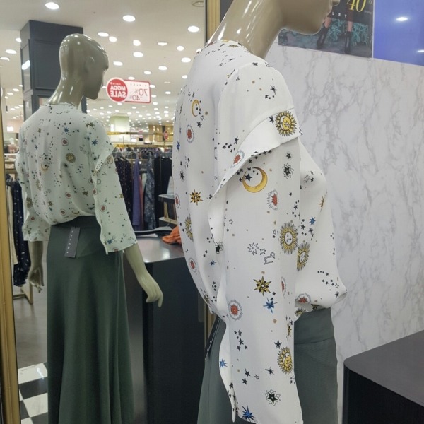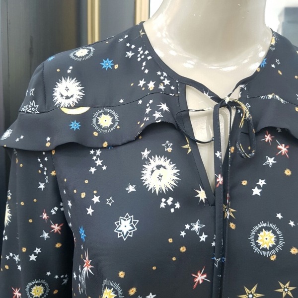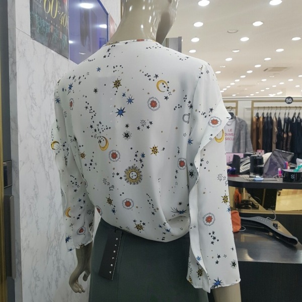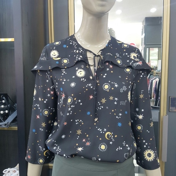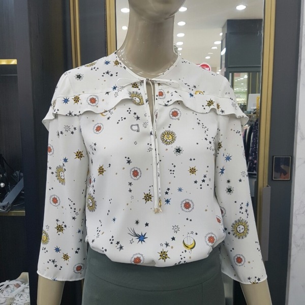 태양 해 달 별이 프린트된 쉬폰 블라우스입니다