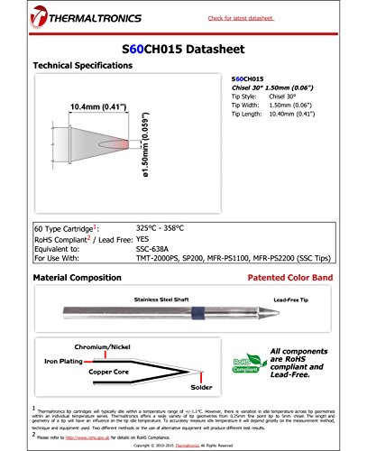 Thermaltronics S60CH015 Chisel 30deg 1.50mm (0.06") interchangeable for Metcal SSC-638A