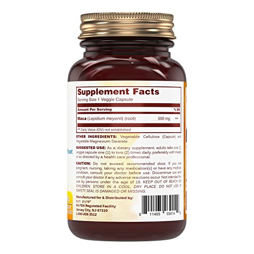 Sun Pure Maca Root is a dietary supplement that provides the benefits of maca root for women and for men alike. Our maca veggie capsules provide nothing but maca, pure and simple, allowing you to get all the nutritional benefits of maca root without any of the chemicals and fillers commonly used in other maca root pills available on the market today. Our 500 milligram maca root veggie capsules provide an optimal dose of maca and are often used to: