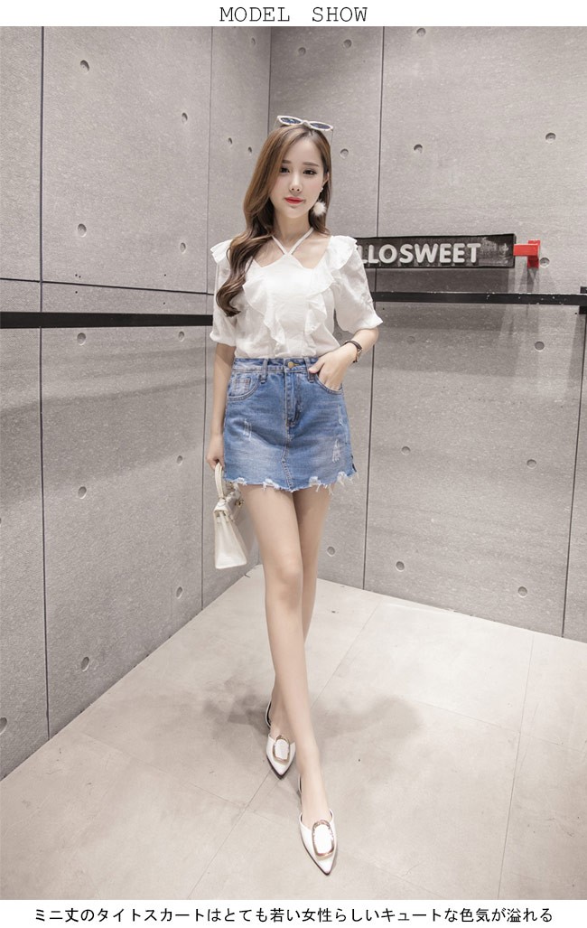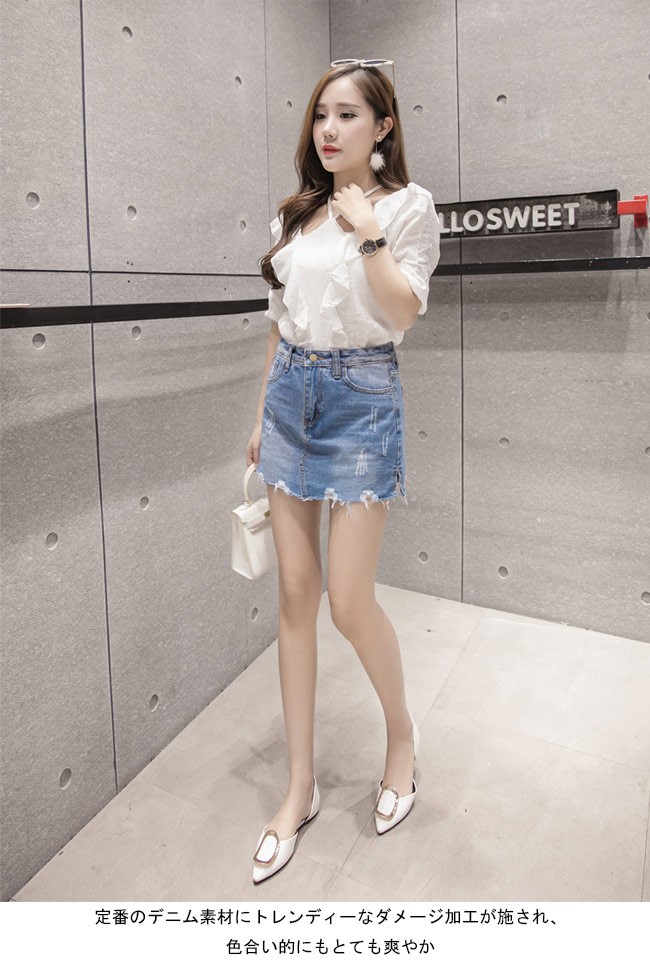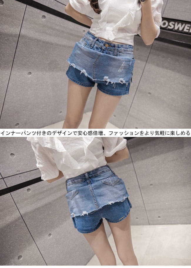 デニムスカート レディース ミニスカート インナーパンツ付き タイトスカート ジーンズ 女性用 スカート ショート丈 デニム ボトムス 通勤レディース用のミニスカートが登場ミニ丈のタイトスカートはとても若い女性らしいキュートな色気が溢れるインナーパンツ付きのデザインで安心感倍増、ファッションをより気軽に楽しめる定番のデニム素材にトレンディーなダメージ加工が施され、色合い的にもとても爽やか夏のコーデをよりオシャレに、そして手持ちのアイテムとは簡単に組み合わせられる一枚カラー:写真色素材 綿混紡サイズ(cm) S M L XL 2XLS ウエスト64 ヒップ86 総丈38M ウエスト68 ヒップ90 総丈39L ウエスト72 ヒップ94 総丈40XL ウエスト76 ヒップ98 総丈412XL ウエスト80 ヒップ102 総丈41ご注意:※サイズは平置きサイズです。素人採寸ですので、若干の誤差がございます、ご了承ください。