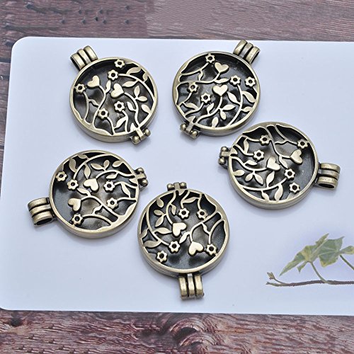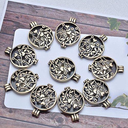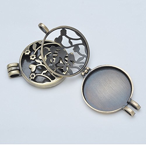 10 Antique Bronze Locket Filigree Round Charm Pendant