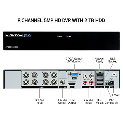 -. Binding : Electronics -. Brand : Night Owl Security -. Color : White -. EAN : 0810830025032 -. Feature : Conserving hard Drive space- locating your recordings has just been made that much easier! night Owl's smart detection security system comes equipped with a pre-installed 2 TB hard Drive (HDD). / Night vision- night Owl's Wired Infrared cameras provide up to 100 ft. Of night vision. During the day your camera will display in full Color mode. / 5MP HD resolution indoor/outdoor cameras- night Owl's 5MP Infrared cameras are intended for both indoor and outdoor use. / Smart auto detection- with smart auto detection, your DVR will automatically be detected by the night Owl x software, therefore making connecting easy! / Multiple viewing options with digital zoom- talk about being connected! night Owl's x app allows the user to create "favorite" screens and view multiple cameras from unlimited locations. -. Label : Night Owl -. Manufacturer : Night Owl -. Model : XHD502-88P -. MPN : XHD502-88P -. NumberOfItems : 4 -. PackageQuantity : 1 -. PartNumber : XHD502-88P -. ProductGroup : Photography -. ProductTypeName : SURVEILANCE_SYSTEMS -. Publisher : Night Owl -. Studio : Night Owl -. Title : Night Owl Security Security System Home Security System, White (XHD502-88P) -. UPC : 810830025032