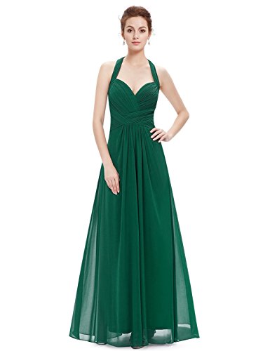 This stunning green evening dress features a flattering non-adjustable halter neckline with a ruched sweetheart bodice and full length chiffon skirt. Wear this elegant gown to weddings, prom, evening parties, or black tie affairs!Feature