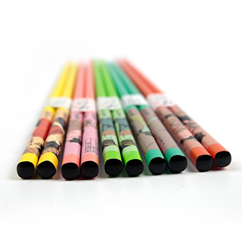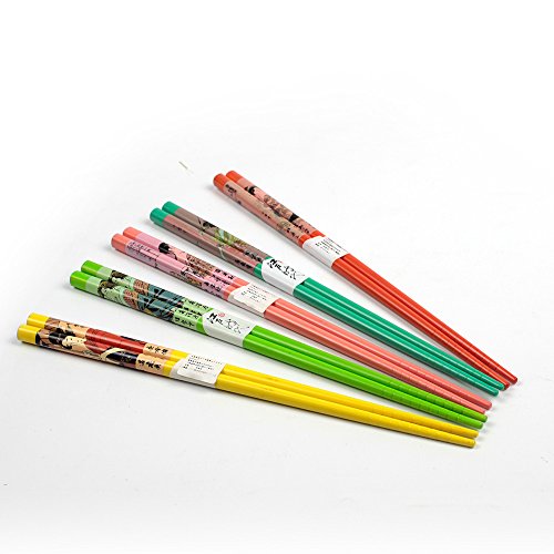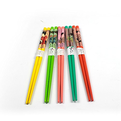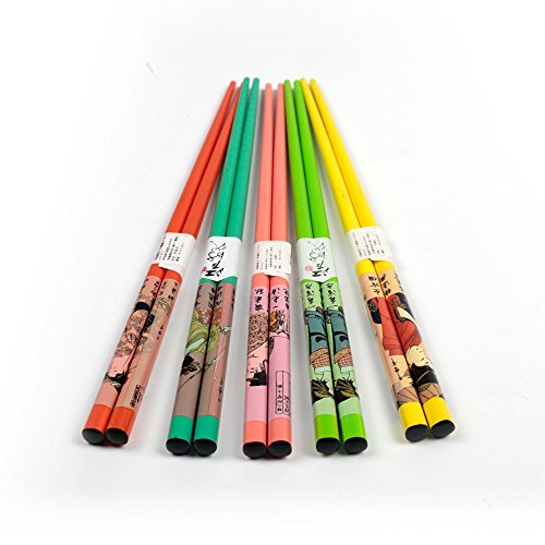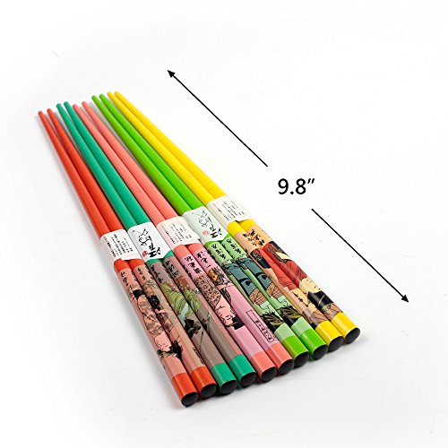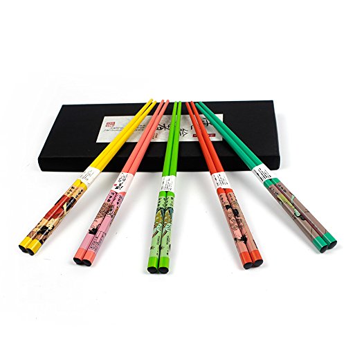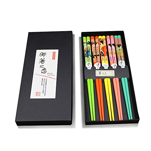 HUANGYIFU 9.8” Long Five Pairs Colorful Reusable Classical Pattern Chopsticks,with Case