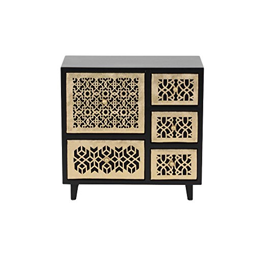 Benzara Ava Wooden Jewelry Chest, Golden and Brown Box