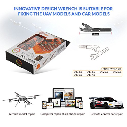 - SUITABLE APPLIANCES: 52 in 1 precision screwdriver set is designed to service all popular laptops, mobile devices, and other precision items like wrist watches and glasses. Specially designed wrenches are suitable fixing UAV models, car models or other DIY maintenance.
