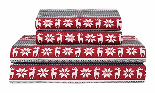 Elite Home Products Winter Nights Cotton Flannel Sheet Set, California King, Deer/Red
