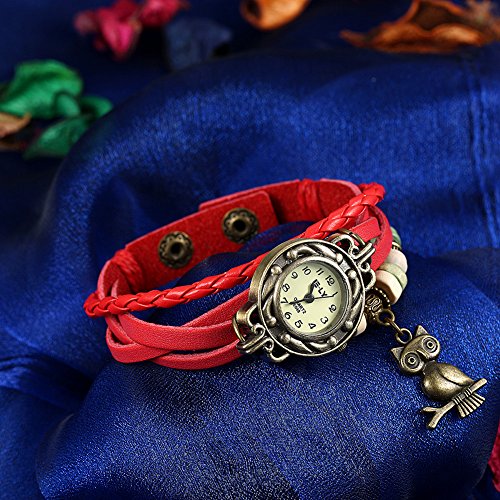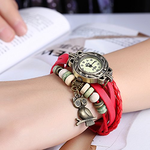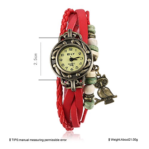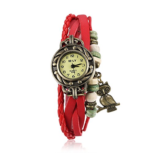 Naivo Women's Quartz Brass Plated Stainless Steel and Leather Casual Watch, Color:Red (Model: NAIVO-WATCH-1199)
