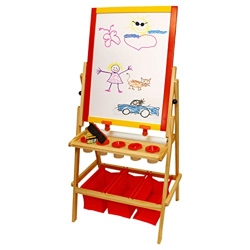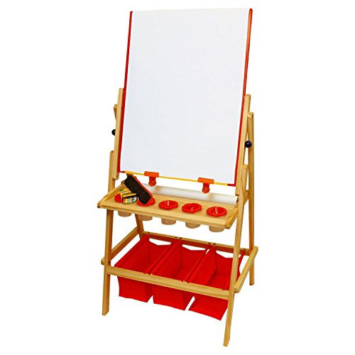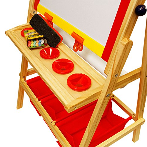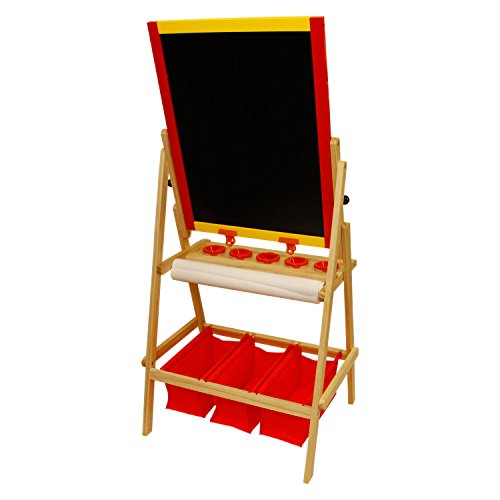 US Art Supply Flip-Over Children's Paint and Drawing Artist Easel with Child's Chalkboard, Dry Erase Board, 3 Large Storage Bins, Paper Roll, Chalk, Chalkboard Eraser and 5 No-Drip Paint Cups