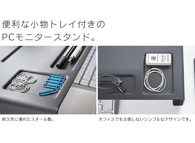 ポイント便利な小物トレイ付きのPCモニタースタンド