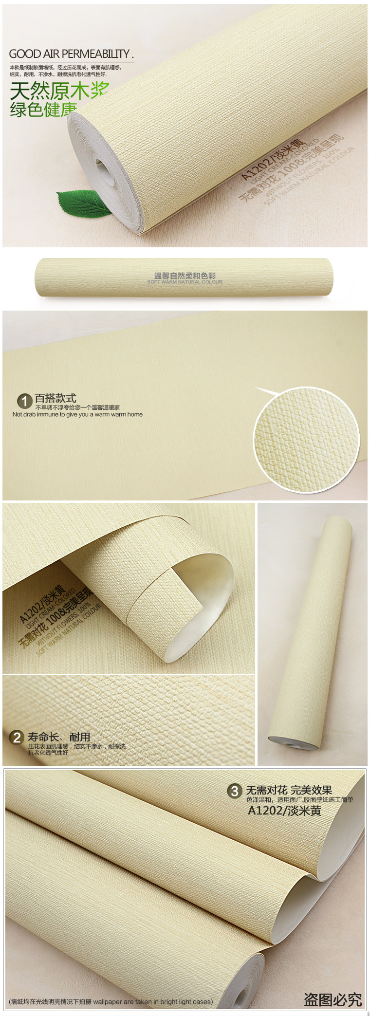 New arrival Brand Pure/Plain colour simple modern style Non-woven Fabrics three-dimensional Wallpaper/wall Sticker wedding /Living /Bedroom decoration 0.53*10m/roll singapore