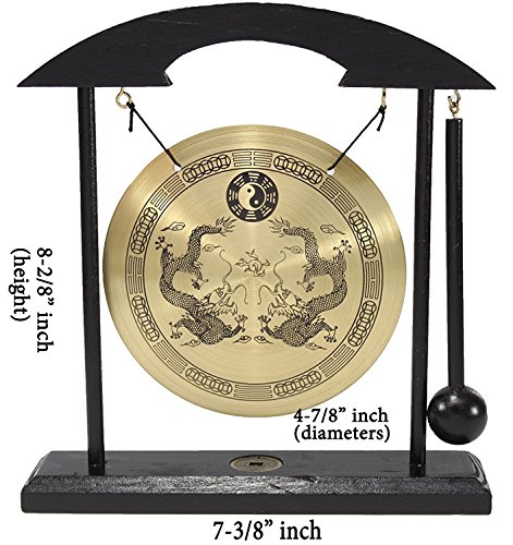 Zen Table Gong Dragon with Taiji Symbols Feng Shui Meditation Desk Bell Home Decor Housewarming Congratulatory Blessing Gift US Seller