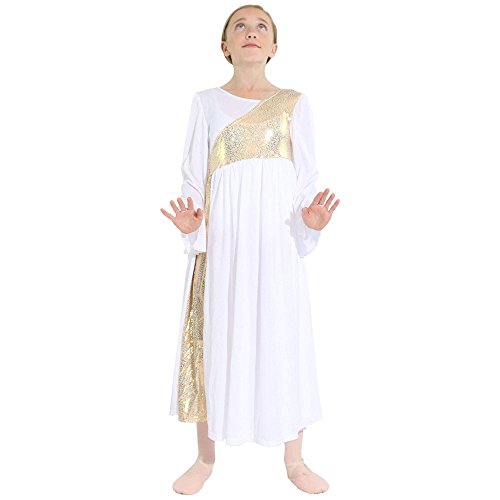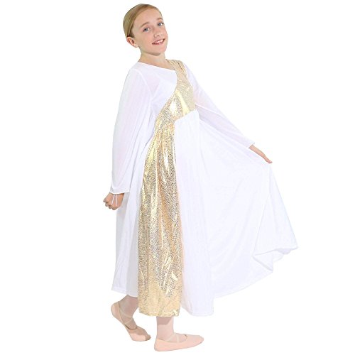 Danzcue Girls Shimmery Asymmetrical Bell Sleeve Dance Dress