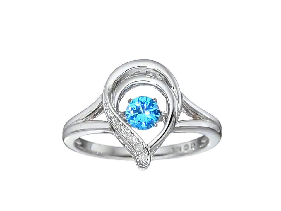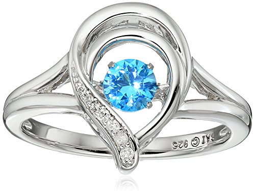 Sterling Silver Swiss Blue Topaz and Diamond Pear Shape Dancing Ring, Size 7