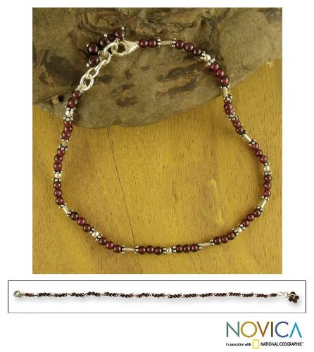 -. Binding : Jewelry -. Brand : NOVICA -. Department : womens -. EAN : 0808773211537 -. Feature : An original NOVICA fair trade product in association with National Geographic. / Includes an official NOVICA Story Card certifying quality & authenticity. / NOVICA works with Narayani to craft this item. / Includes an original NOVICA jewelry pouch to keep for yourself or give as a gift. / 9.5 in. min L - x 9.75 in. max L x 0.2 in. W -. Label : NOVICA -. Manufacturer : NOVICA -. MPN : 175565 -. PackageQuantity : 1 -. PartNumber : 175565 -. ProductGroup : Jewelry -. ProductTypeName : FINENECKLACEBRACELETANKLET -. Publisher : NOVICA -. Studio : NOVICA -. Title : NOVICA Garnet .925 Sterling Silver Beaded Anklet, 9.5" 'Crimson Trios' -. UPC : 808773211537