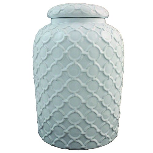 - Vase was carefully crafted and features a lattice texture with matching white lid