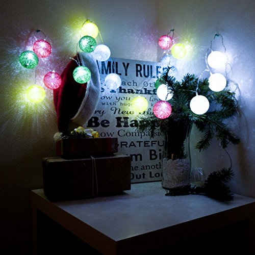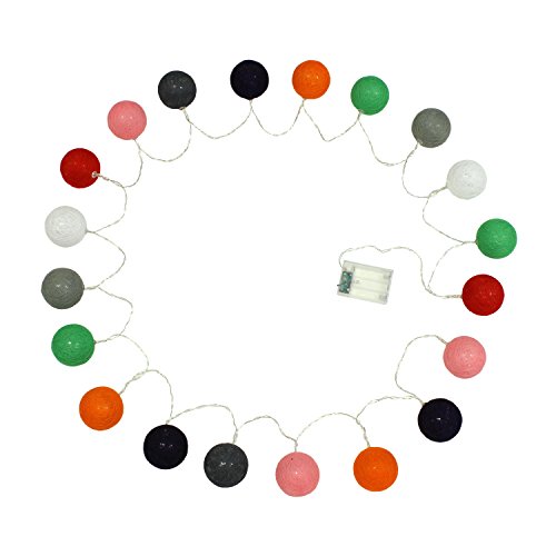 ALEKO B20LEDCOBALL Battery 20 LED Multicolor Cotton Balls Flash Light Christmas Holiday Light 7 Feet