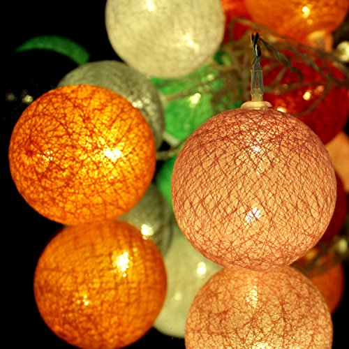 - Mode: Steady/Flash. Power: 3 AA Battery. Color: White. LED Casing: Multicolored cotton balls. 20 LED Lights.