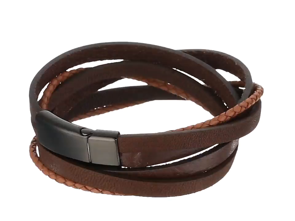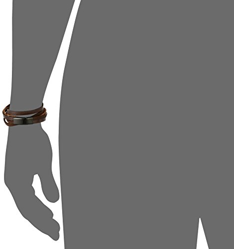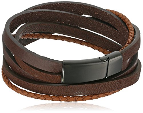 Men's Black Ion-Plated Stainless Steel and Leather Wrap Bracelet